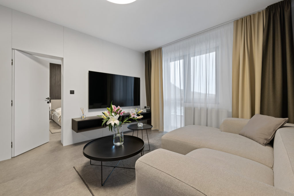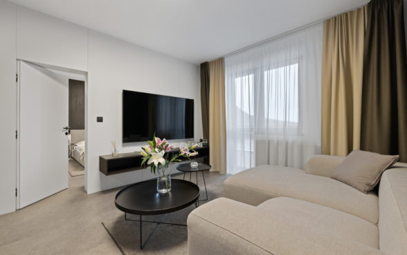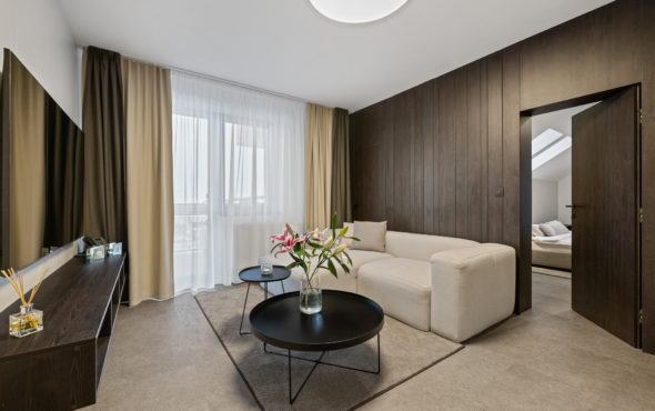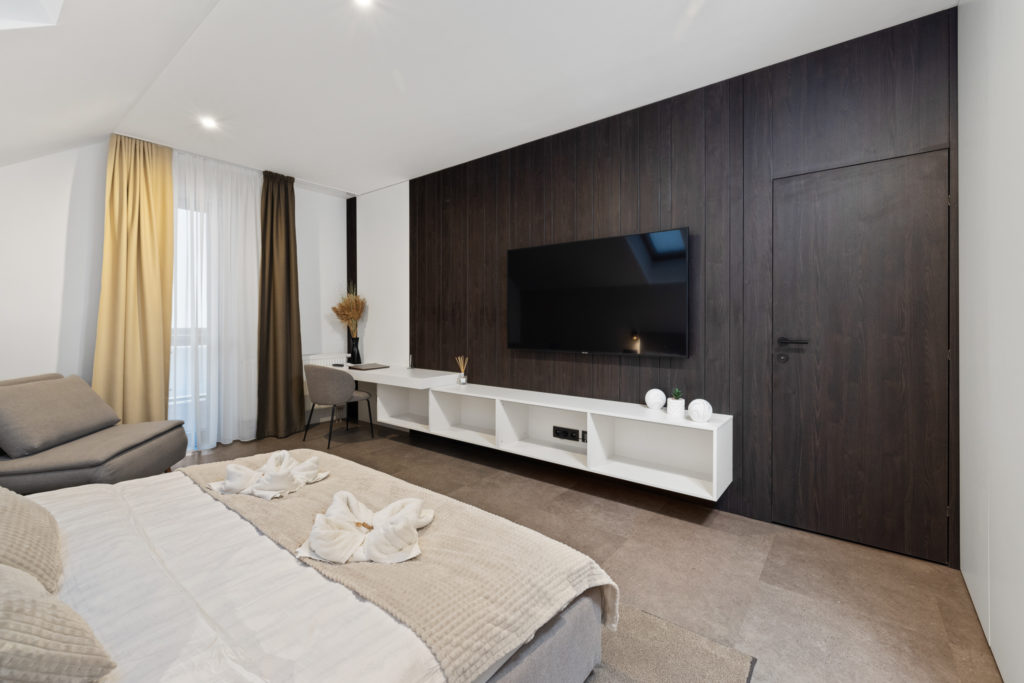 Novozrekonštruovaný luxusný apartmán s dvoma oddelenými spálňami s možnosťou doložiť prístelku, s vlastnou plne funkčnou kuchynkou, moderným obývacím priestorom a súkromnou jacuzzi priamo na balkóne. Doprajte si to najlepšie, čo ubytovanie vo Valčianskej doline ponúka.